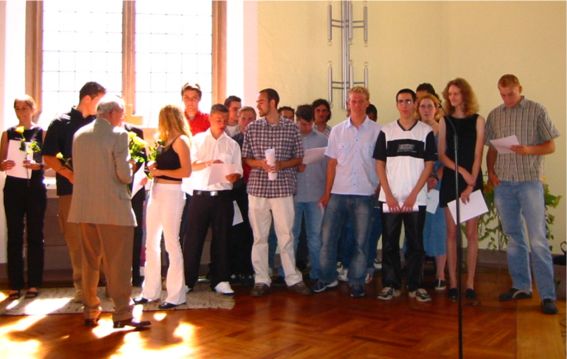 2003 Am Dienstag, 15. Juli 2003, fand in der Zweibrücker Karlskirche die Abschlussfeier der Fachoberschule Wirtschaft, der Höheren Berufsfachschulen für Datenverarbeitung, Betriebswirtschaft und Fremdsprachen statt. Zusätzlich zu Ihren Abschlusszeugnissen konnten die meisten Schüler der Höheren Berufsfachschul-Klassen das Zeugnis der Fachhochschulreife in Empfang nehmen, da sie an der Ergänzungsprüfung erfolgreich teilgenommen haben. Die